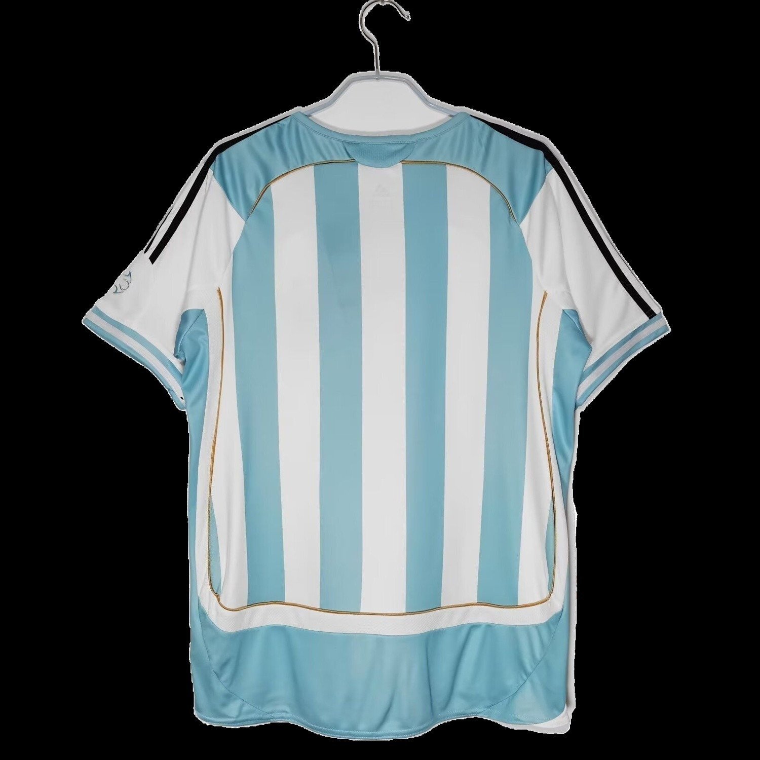 Worn during a memorable tournament, this shirt embodies the pride and spirit of the Argentine national team. Its classic sky blue and white stripes symbolize the rich heritage and tradition of a nation passionate about football.