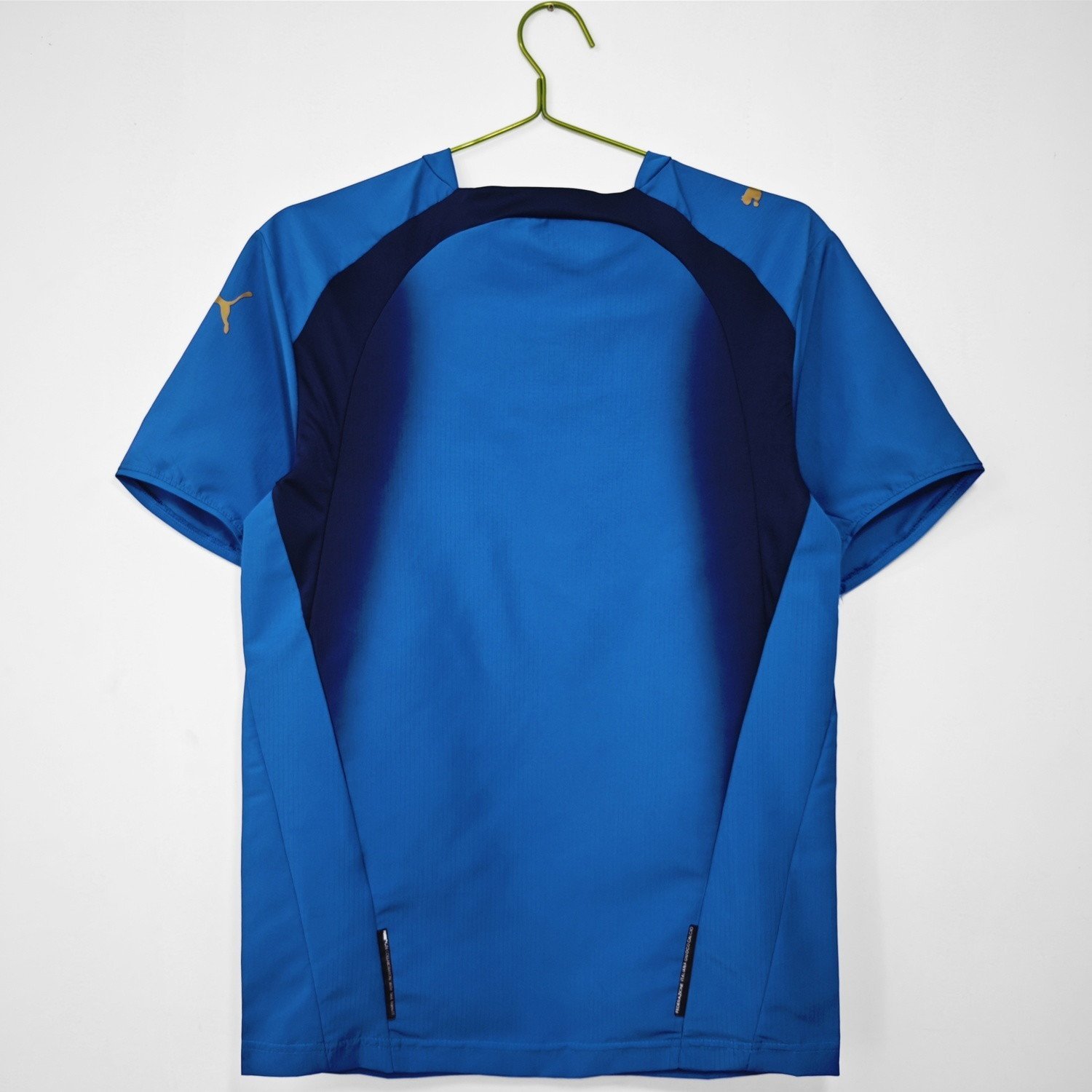 This jersey is blue with white and gold details, a simple design that reflects Italy’s confidence and quality. The jersey also has the Puma logo and the Italy badge on the front, and the player’s name and number on the back. The jersey is made of polyester fabric that is smooth and durable.